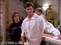 After "Falcon Crest", the chandeliers were used for "Hotel", AARON SPELLING's new series premièring in the 1983-84 season, which — after filming the pilot at WARNER HOLLYWOOD STUDIOS (nowadays THE LOT) and on location in San Francisco — resumed regular production at THE BURBANK STUDIOS (now WARNER BROS. STUDIOS). On "Hotel", they were first utilized in the ballroom of the St. Gregory Hotel, but with the lowest crystal glass elements removed; the screen capture is from "Tomorrows" ("# 014 <1.14>; original U.S. airdate: 01/11/1984, ABC). Depending on the need for each scene in season 2 of "Hotel", the chandeliers were used both in The Carlyle Room Restaurant (in the same way) and in the redressed ballroom set (the lowest crystal glass elements now back in place).
