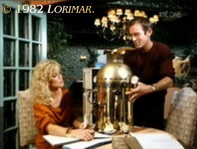 Before "Falcon Crest", LORIMAR had used the same tea service on "Dallas", for example. It was visible in the episode "Julie's Return" (# 021 <1.16 — original count> / <2.16 — DVD count>; original U.S. airdate: 01/26/1979, CBS) in Julie Grey's apartment.