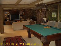 The spacious living room has a rustic charme and yet an elegant atmosphere: Billards corner and one of the sitting areas next to the fireplace.