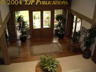The bar separating the living room from the dining nook. View from the gallery above the living room area towards the eastern entrance.