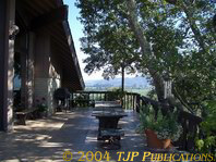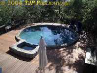 The large upper deck of the house. A view from the upper deck down to the pool deck. The swimming pool was built of native stone from the Tuscany Valley.
