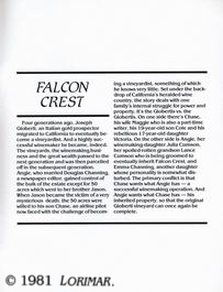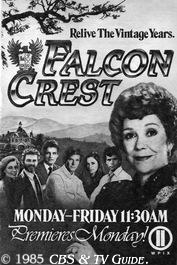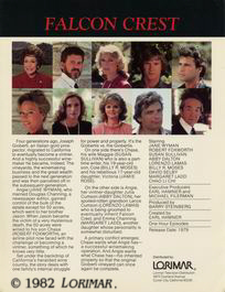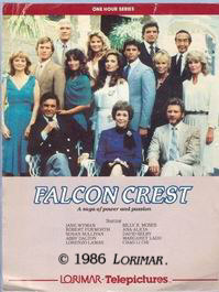 note that the photo of JANE WYMAN and LORENZO LAMAS was accidentally flip-flopped and that WARNER BROS. decided to use the version of the show's logo that was specifically modified and redesigned for this website, www.falconcrest.org