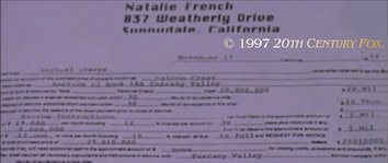 The sales contract between Emma Channing and Michael Sharpe about Falcon Crest from # 214 <9.09> was never featured as an insert in a close-up on "Falcon Crest". It was only seen briefly in various scenes.