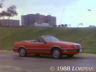 The picture car used as Ben Agretti's red Chrysler LeBaron Convertible in season 8 (screen capture 1) had been used by LORIMAR before as Sly Lovegren's vehicle on "Dallas"; screen grab 2 is from "Showdown at the Ewing Corral" (# 288 <11.07 – original count> / <12.07 – DVD count>; original U.S. airdate: 12/16/1988, CBS).