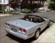 The picture car used as Eric Stavros' gray Chevrolet Corvette C4 Convertible in # 156 and 166 (screen grab 1) had been used by LORIMAR before as Dr. Jerry Kenderson's vehicle on "Dallas"; screen grab 2 is from "Masquerade" (# 215 <8.24 – original count> / <9.24 – DVD count>; original U.S. airdate: 03/07/1986, CBS).