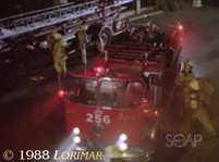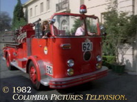 Before that, the vehicle was used in "Hart to Hart", which had just moved to THE BURBANK STUDIOS to film its 1982/83 season; the fire truck was visible in the episode "One Hart too Many" (# 076 <4.09>; original U.S. airdate: 12/07/1982, ABC — screen capture 2). "Hart to Hart" rented the vehicle from LORIMAR; it was dressed with a different identification code on that show.