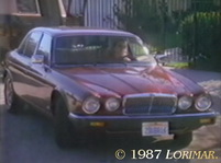 One of the many luxury cars among LORIMAR's assets was this burgundy Jaguar XJ (Series III), which was utilized as a background car on "Falcon Crest" from time to time and whose most prominent use was as realtor Louella's vehicle in # 123.