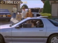 The picture car used as Greg Reardon's blue car in season 5 became available for LORIMAR's next use in seasons 8 through 13 of "Knots Landing" as Greg Sumner's vehicle; the screen grab is from "Slow Burn" (# 165 <8.05>; original U.S. airdate: 10/09/1986, CBS).