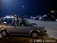 The picture car portraying Andrea Thompson's silver VW Rabbit (series I, type 17) in # 203 was used a few months later as a background car in a scene on "Knots Landing" filmed on a parking lot at LORIMAR STUDIOS (previously MGM STUDIOS, now SONY PICTURES STUDIOS) in Culver City, CA; the screen grab is from "Close Call" (# 251 <11.04>; original U.S. airdate: 10/19/1989, CBS).