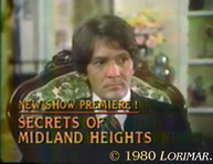 Before "Falcon Crest", this armchair was used to dress the Millington family's house on "Secrets of Midland Heights", the short-lived drama series about a quiet university town in the Midwest, which was LORENZO LAMAS' first assignment as a series regular for LORIMAR. Only eight of the eleven episodes that were filmed were broadcast. The screen capture is from a promo trailer für the series première (original U.S. début: 12/06/1980, CBS).