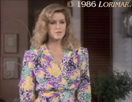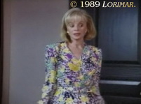 Emma's colorful blouse from "Luck Wave" (# 213 <9.08; original U.S. airdate: 12/01/1989, CBS) was previously worn in "Territorial Imperative" (# 229 <9.07 – original count> / <10.07 – DVD count>; original U.S. airdate: 10/31/1986, CBS) of LORIMAR's "Dallas" by PRISCILLA BEAULIEU PRESLEY, who is approximately the same height as MARGARET LADD.