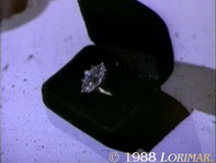 The diamong ring Richard, while in prison, had sent to Maggie in "The Price of Freedom" (# 206 <9.01>; original U.S. airdate: 09/29/1989, CBS) on "Falcon Crest" (screen capture 1) had previously been used on "Knots Landing" in "A Fine Romance" (# 227 <10.08>; original U.S. airdate: 12/29/1988, CBS) as Greg Sumner's engagement ring for Abby Fairgate Cunningham Ewing (screen grab 2).