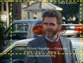 The visible frame in the final cut of the show is smaller than the actual picture negative. "Falcon Crest" is filmed on a 35 mm film with an aspect ratio of the camera negative of 1.37 : 1 while the final product has a 1.33 : 1 (= 4 : 3) aspect ratio on the TV screen.